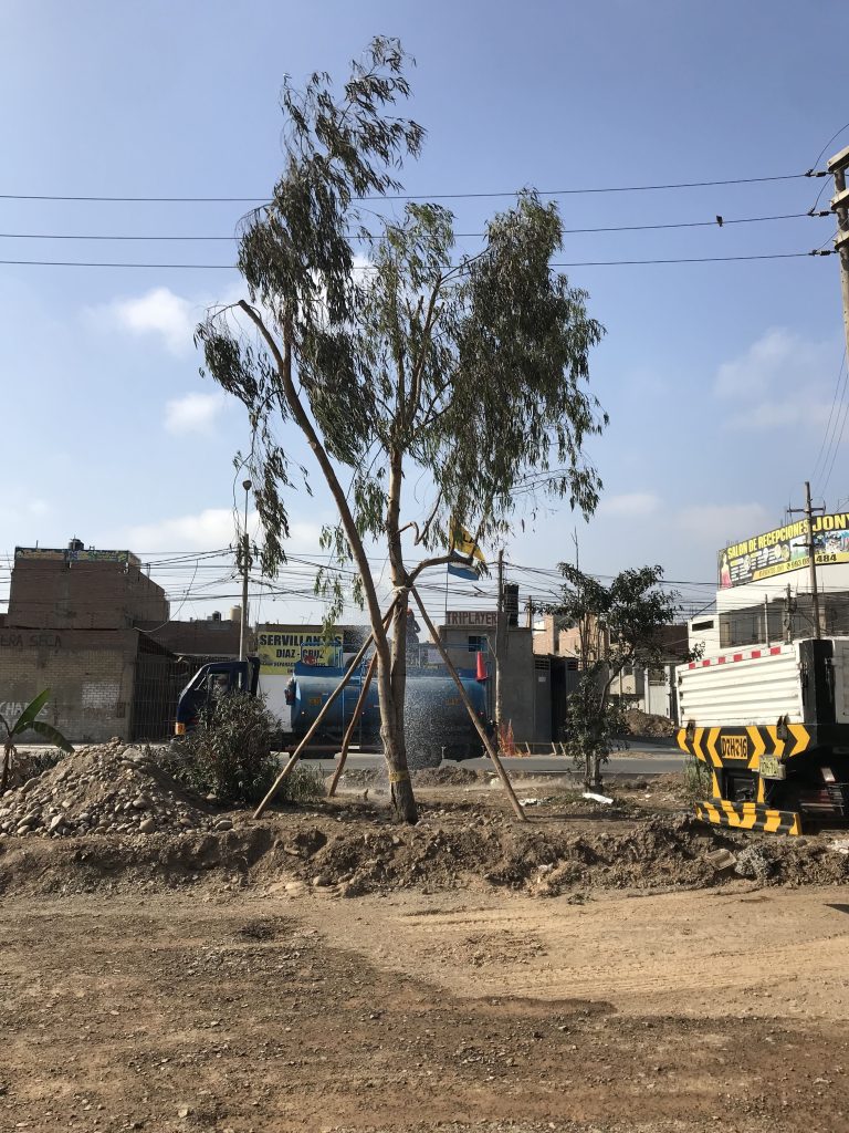 Tras el traslado, el sistema radicular queda comprometido. Aunque el árbol luzca erguido, internamente aún no tiene la fuerza suficiente para resistir vientos, vibraciones o pequeños desplazamientos del suelo. El tutorado cumple aquí una función clave: brindar estabilidad sin inmovilizar por completo al ejemplar.